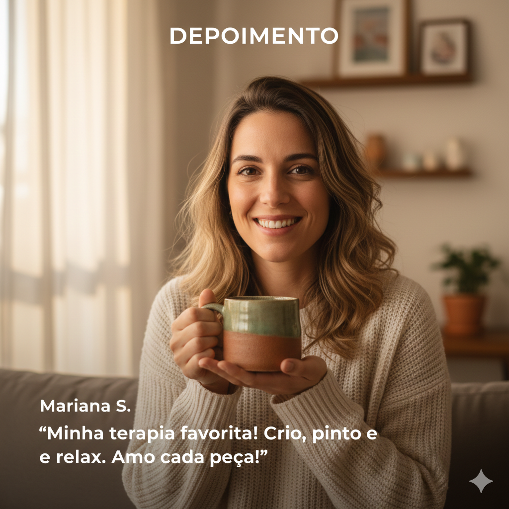 Verde Barro nasceu da vontade de levar essa experiência para dentro da sua casa. Camila deixou o mundo corporativo para colocar as mãos no barro e criar memórias com quem você ama — sem turmas lotadas, sem pressa.